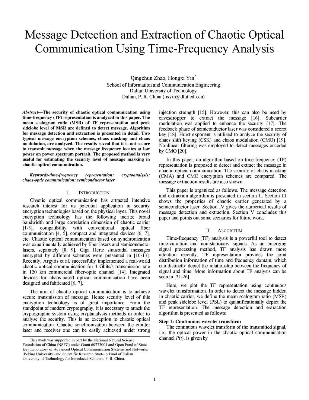 Message Detection and Extraction of Chaotic Optical Communication Using