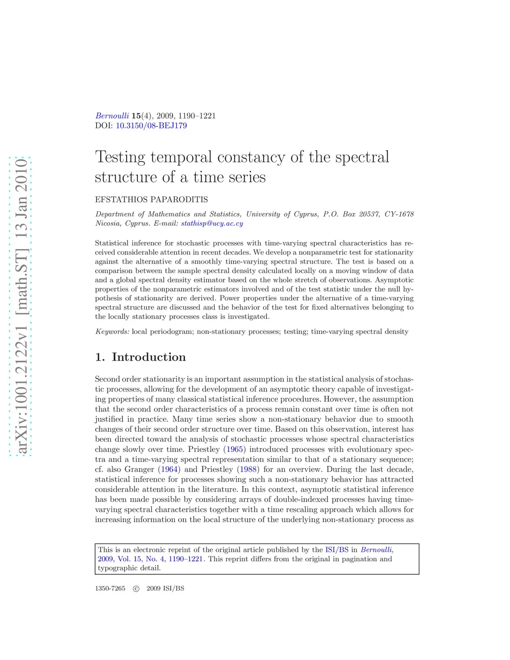 Testing temporal constancy of the spectral structure of a time series