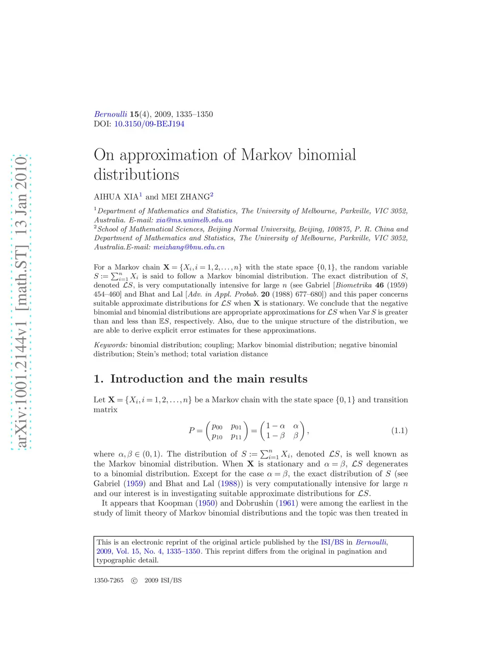 On approximation of Markov binomial distributions