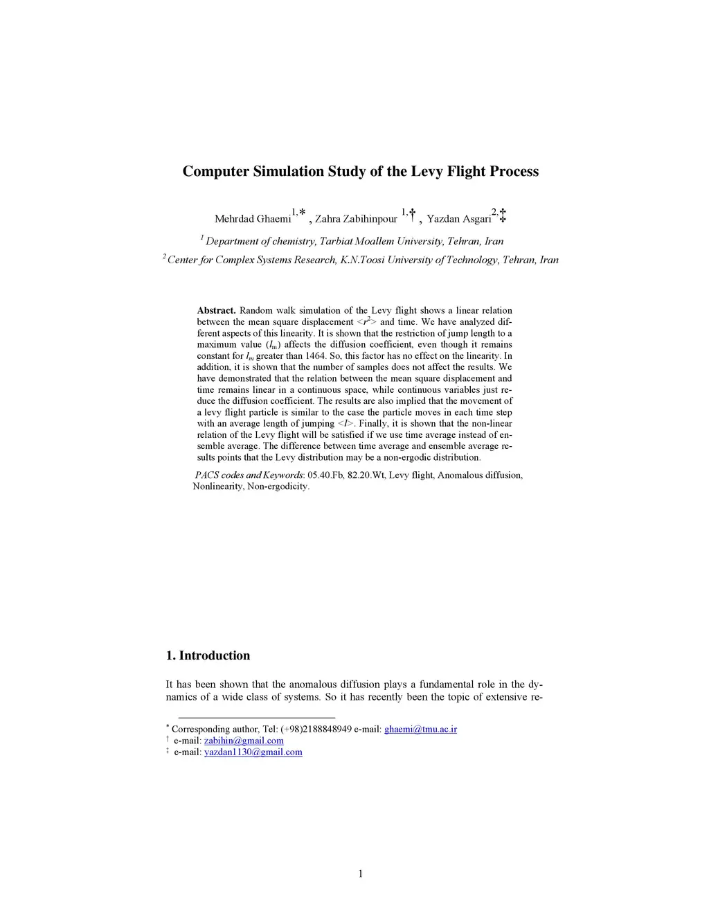Random walk simulation of the Levy flight shows a linear relation between the mean square displacement <r2> and time. We have analyzed different aspects of this linearity. It is shown that the restriction of jump length to a maximum value (lm) affects the diffusion coefficient, even though it remains constant for lm greater than 1464. So, this factor has no effect on the linearity. In addition, it is shown that the number of samples does not affect the results. We have demonstrated that the relation between the mean square displacement and time remains linear in a continuous space, while continuous variables just reduce the diffusion coefficient. The results are also implied that the movement of a levy flight particle is similar to the case the particle moves in each time step with an average length of jumping <l>. Finally, it is shown that the non-linear relation of the Levy flight will be satisfied if we use time average instead of ensemble average. The difference between time average and ensemble average results points that the Levy distribution may be a non-ergodic distribution.