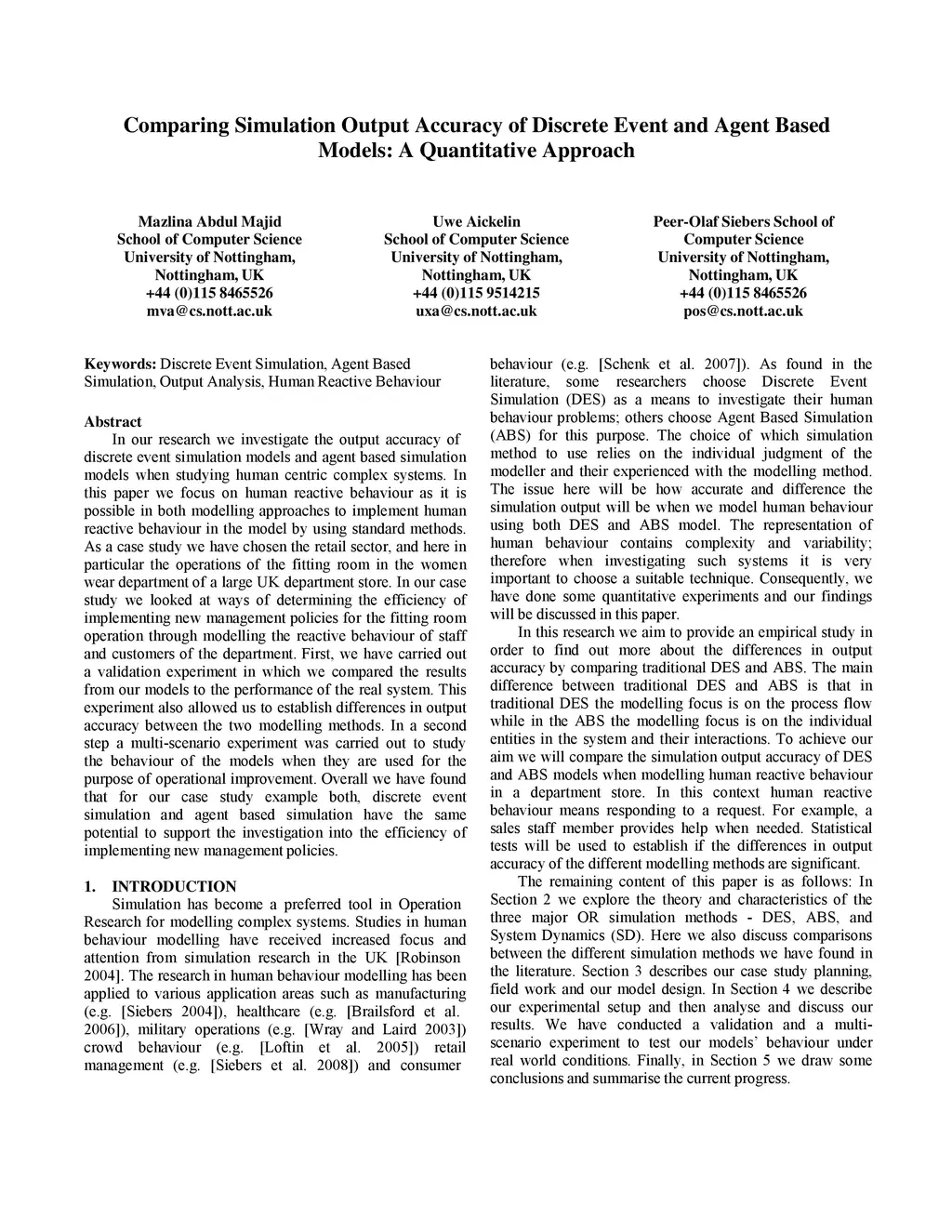 Comparing Simulation Output Accuracy of Discrete Event and Agent Based