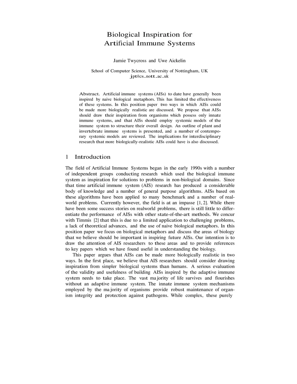 International Conference on Artificial Immune Systems (ICARIS), 2007