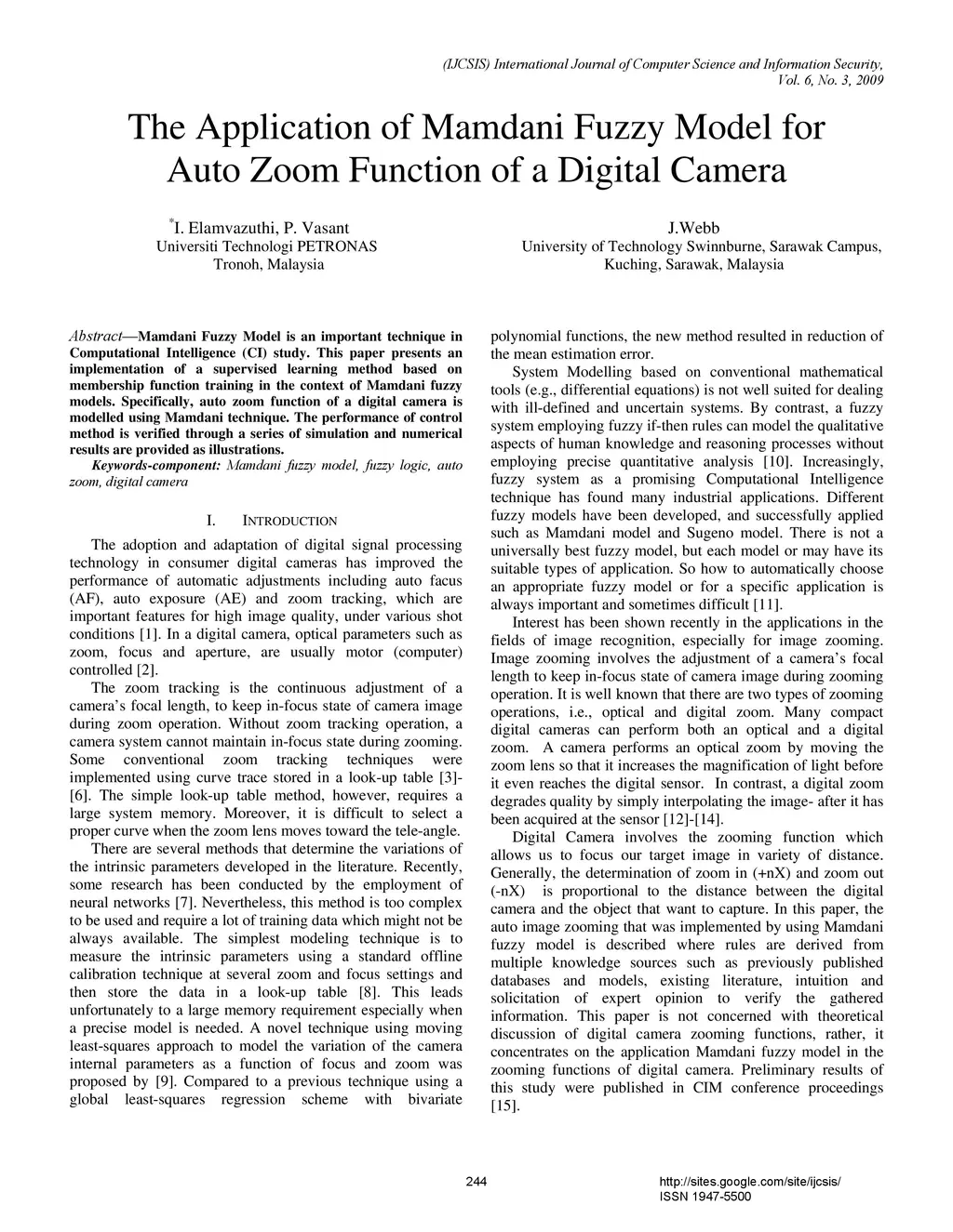 The Application of Mamdani Fuzzy Model for Auto Zoom Function of a