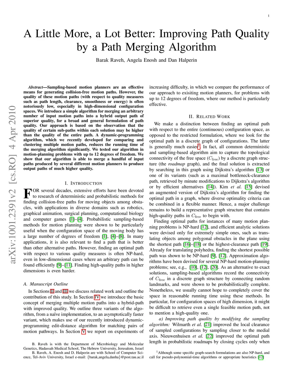 Sampling-based motion planners are an effective means for generating collision-free motion paths. However, the quality of these motion paths (with respect to quality measures such as path length, clearance, smoothness or energy) is often notoriously low, especially in high-dimensional configuration spaces. We introduce a simple algorithm for merging an arbitrary number of input motion paths into a hybrid output path of superior quality, for a broad and general formulation of path quality. Our approach is based on the observation that the quality of certain sub-paths within each solution may be higher than the quality of the entire path. A dynamic-programming algorithm, which we recently developed for comparing and clustering multiple motion paths, reduces the running time of the merging algorithm significantly. We tested our algorithm in motion-planning problems with up to 12 degrees of freedom. We show that our algorithm is able to merge a handful of input paths produced by several different motion planners to produce output paths of much higher quality.