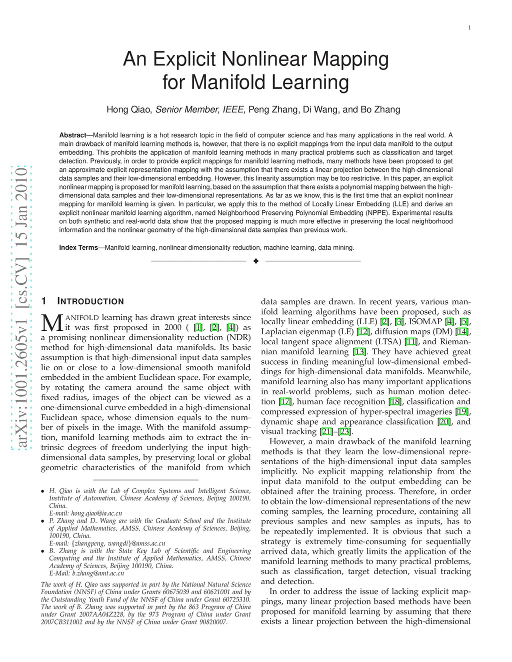 An Explicit Nonlinear Mapping for Manifold Learning