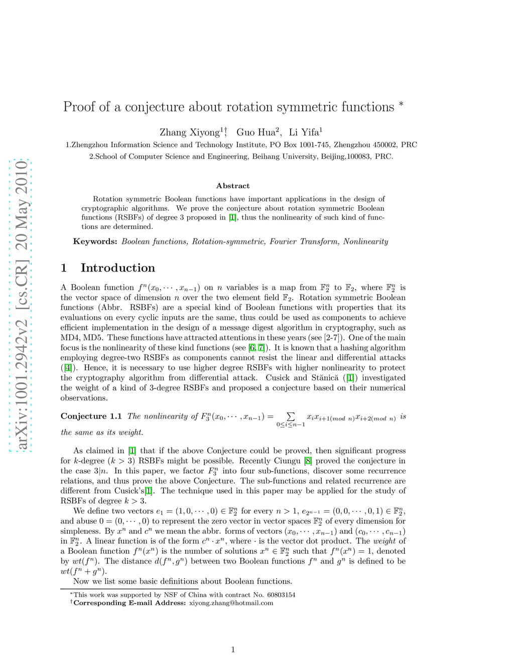 Proof of a Conjecture about Rotation Symmetric Functions
