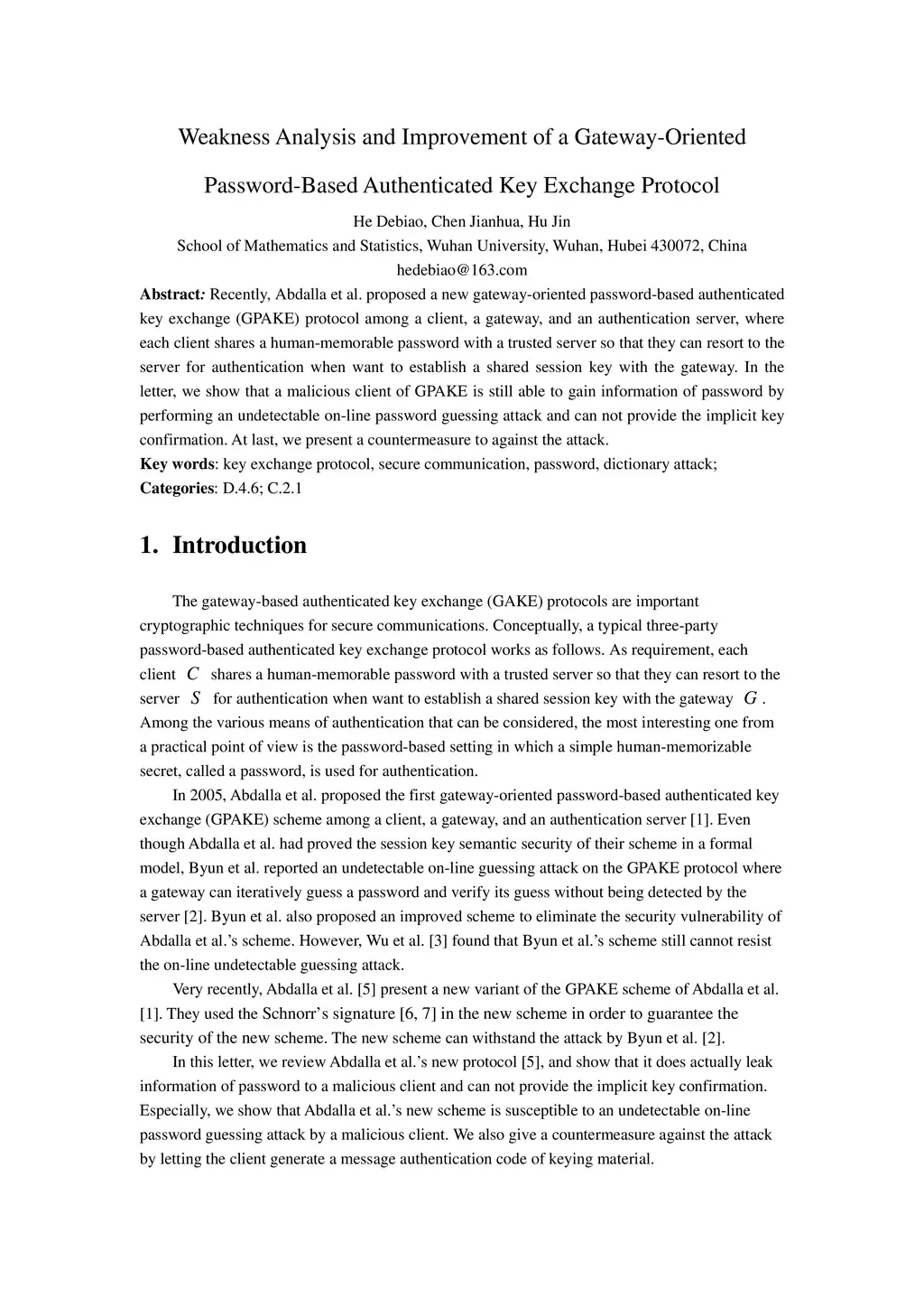 Weakness Analysis and Improvement of a Gateway-Oriented Password-Based