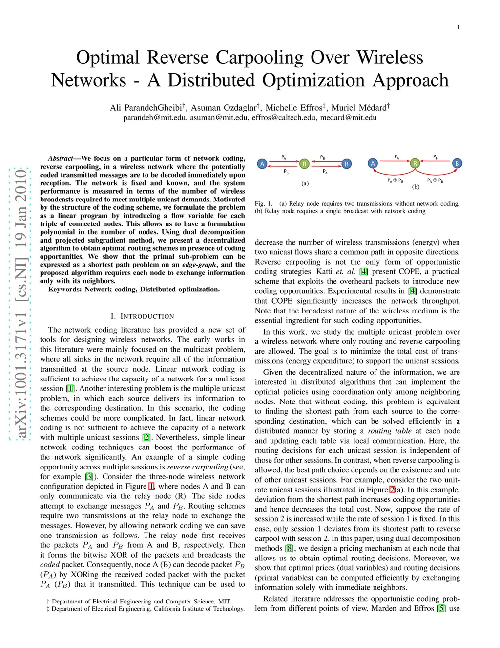 Optimal Reverse Carpooling Over Wireless Networks - A Distributed