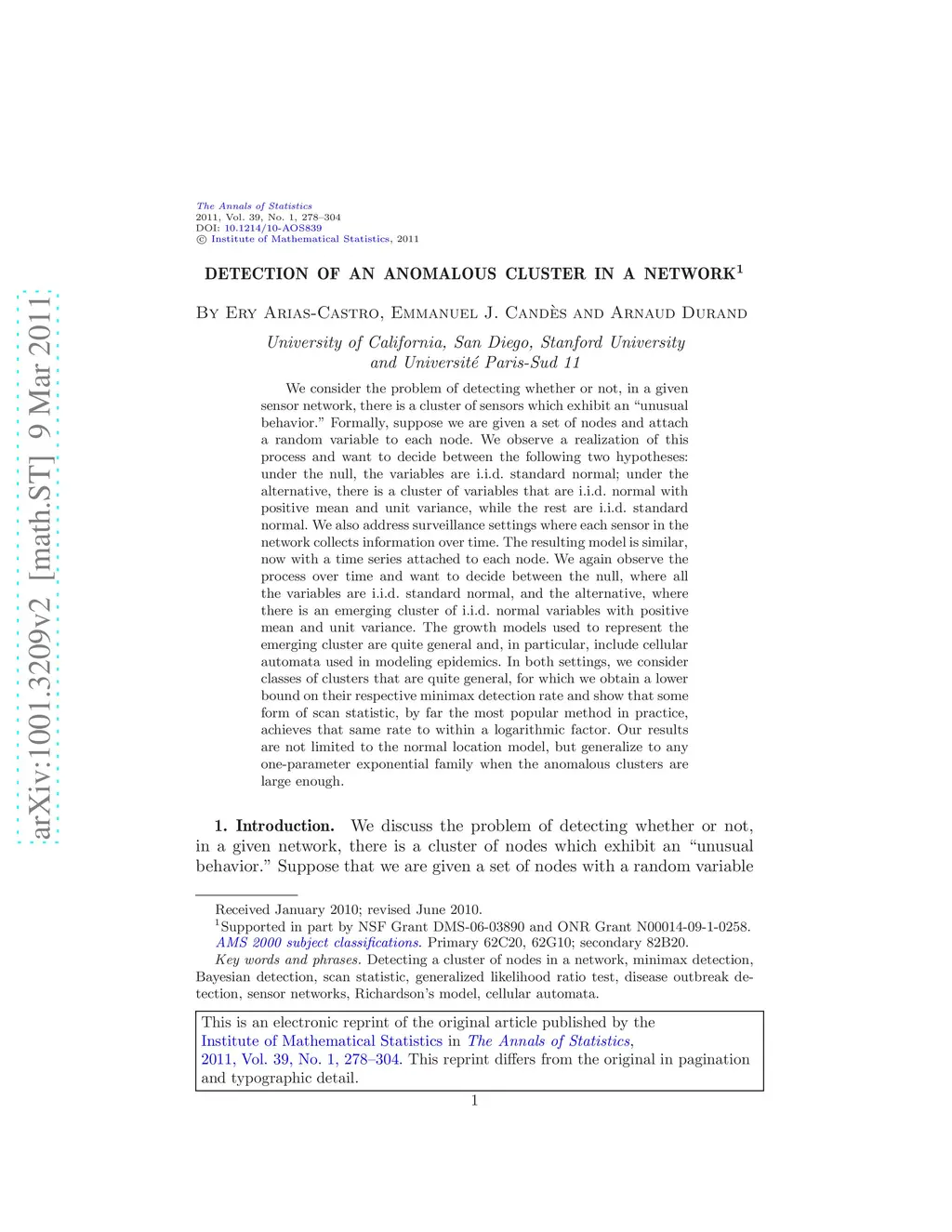 Detection of an anomalous cluster in a network