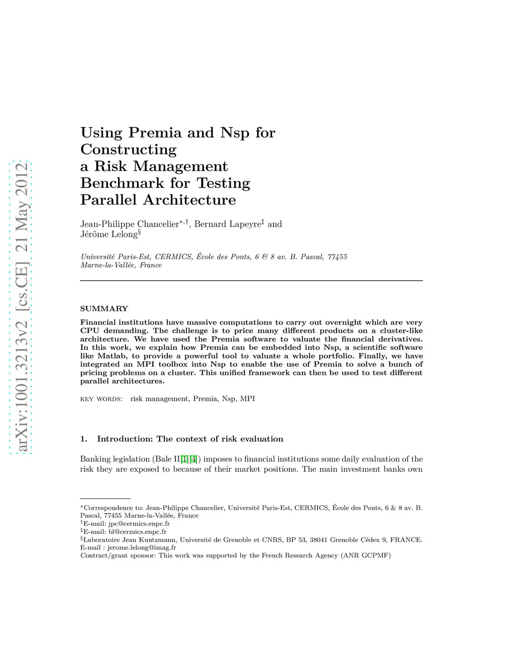 Using Premia and Nsp for Constructing a Risk Management Benchmark for