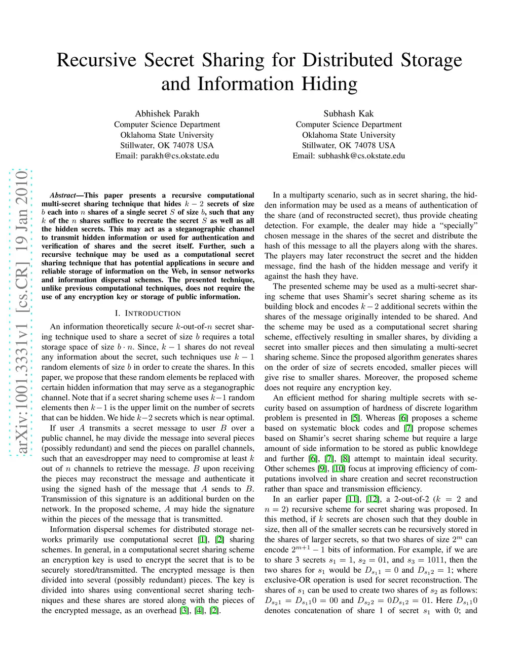 Recursive Secret Sharing for Distributed Storage and Information Hiding