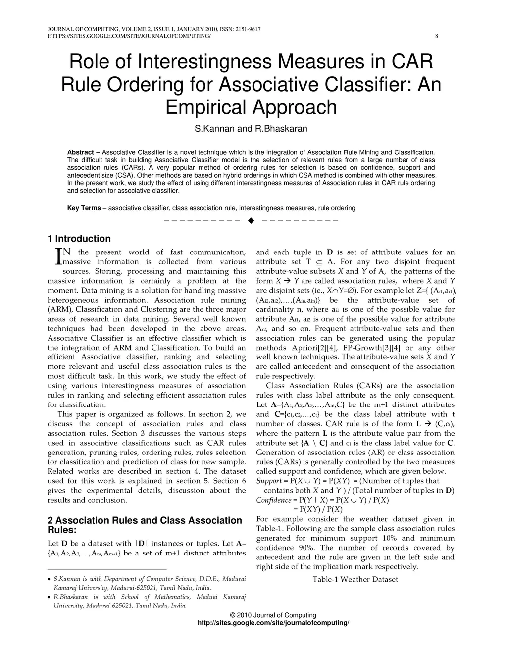 Role of Interestingness Measures in CAR Rule Ordering for Associative