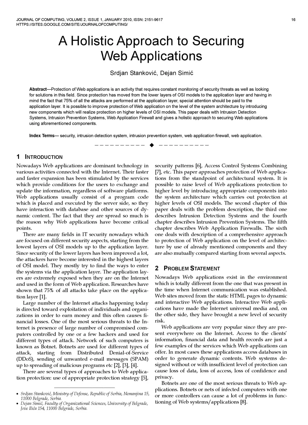 Protection of Web applications is an activity that requires constant monitoring of security threats as well as looking for solutions in this field. Since protection has moved from the lower layers of OSI models to the application layer and having in mind the fact that 75% of all the attacks are performed at the application layer, special attention should be paid to the application layer. It is possible to improve protection of Web application on the level of the system architecture by introducing new components which will realize protection on higher levels of OSI models. This paper deals with Intrusion Detection Systems, Intrusion Prevention Systems, Web Application Firewall and gives a holistic approach to securing Web applications using aforementioned components.
