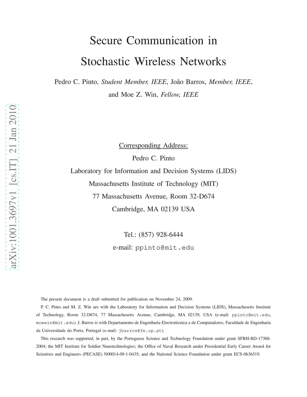 Secure Communication in Stochastic Wireless Networks