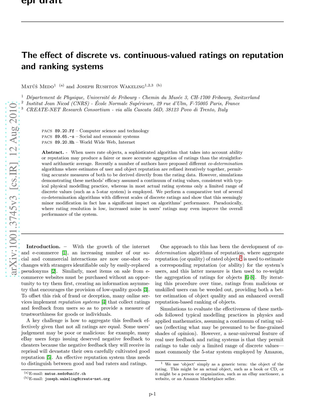 The effect of discrete vs. continuous-valued ratings on reputation and