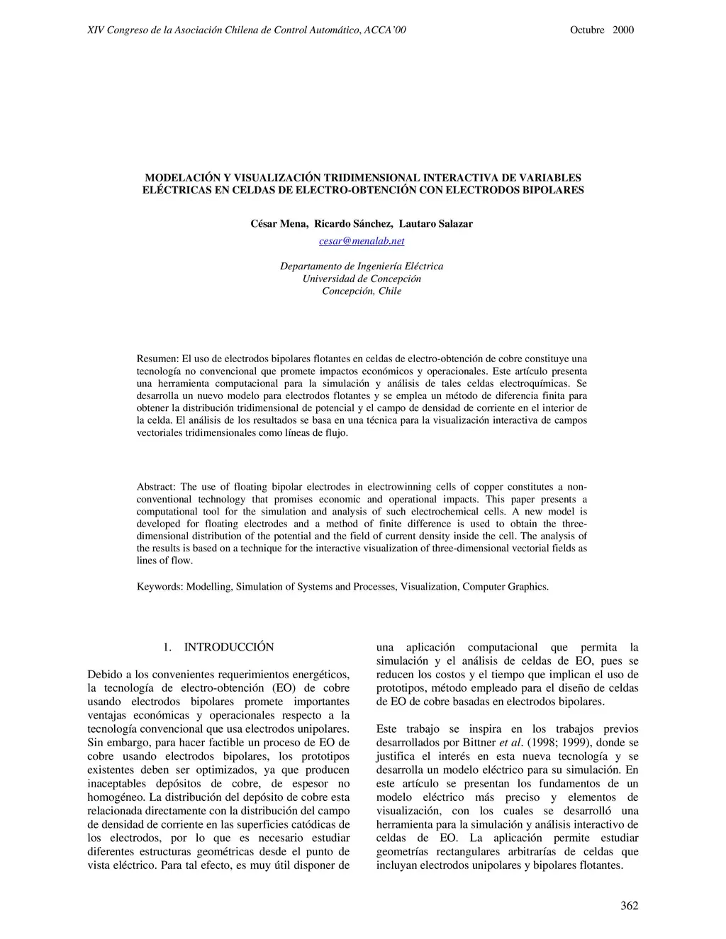 Modelación y Visualización Tridimensional Interactiva de Variables Eléctricas en Celdas de Electro-Obtención con Electrodos Bipolares