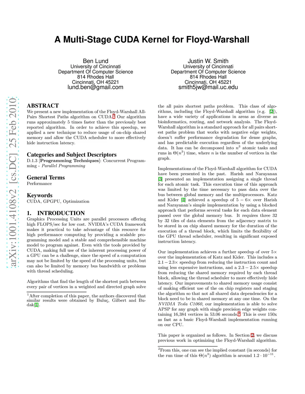 A Multi-Stage CUDA Kernel for Floyd-Warshall