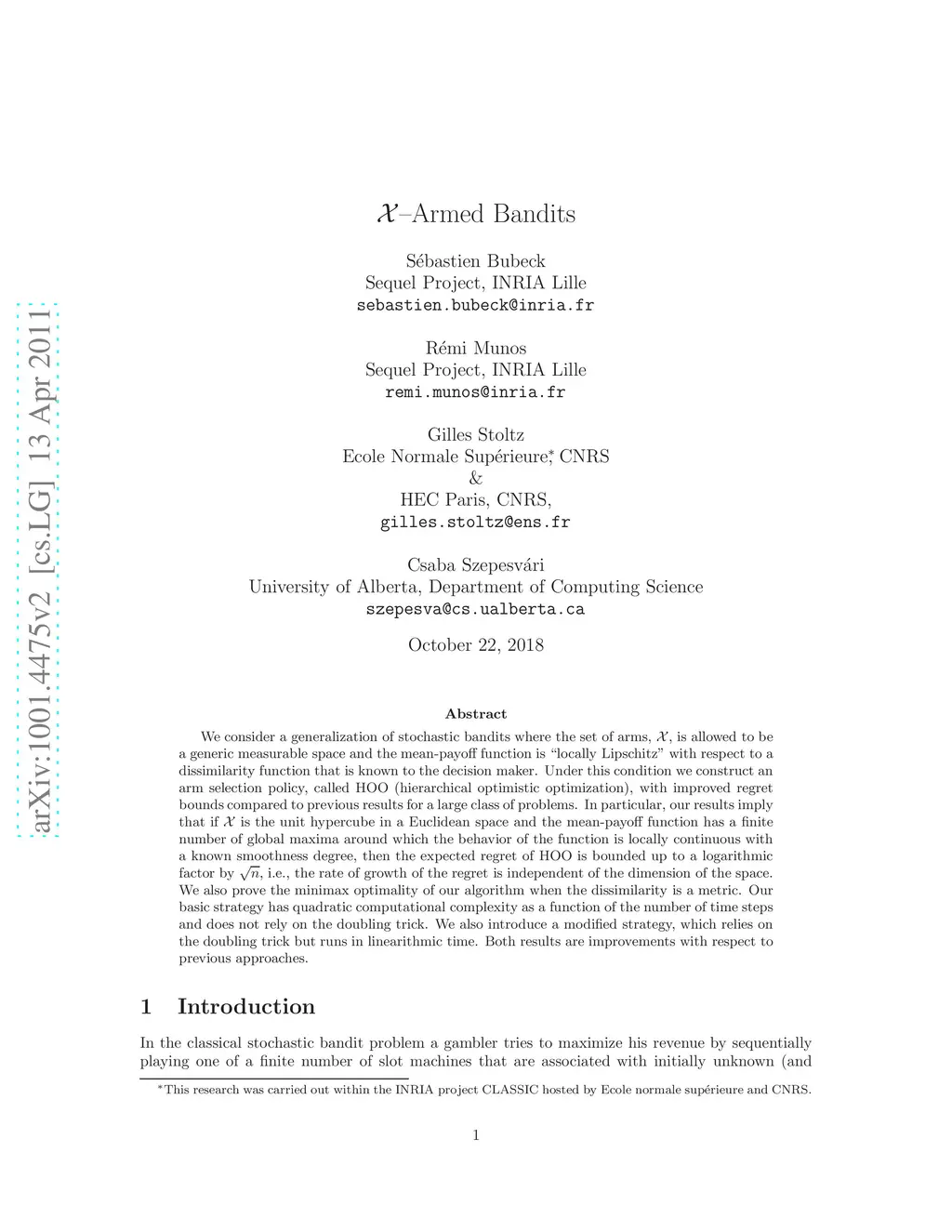 X-Armed Bandits