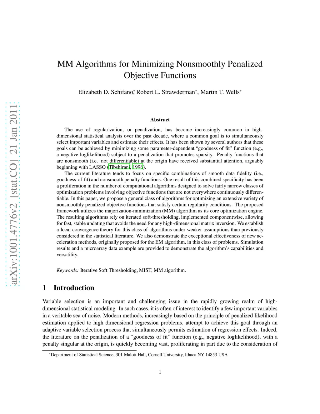 MM Algorithms for Minimizing Nonsmoothly Penalized Objective Functions