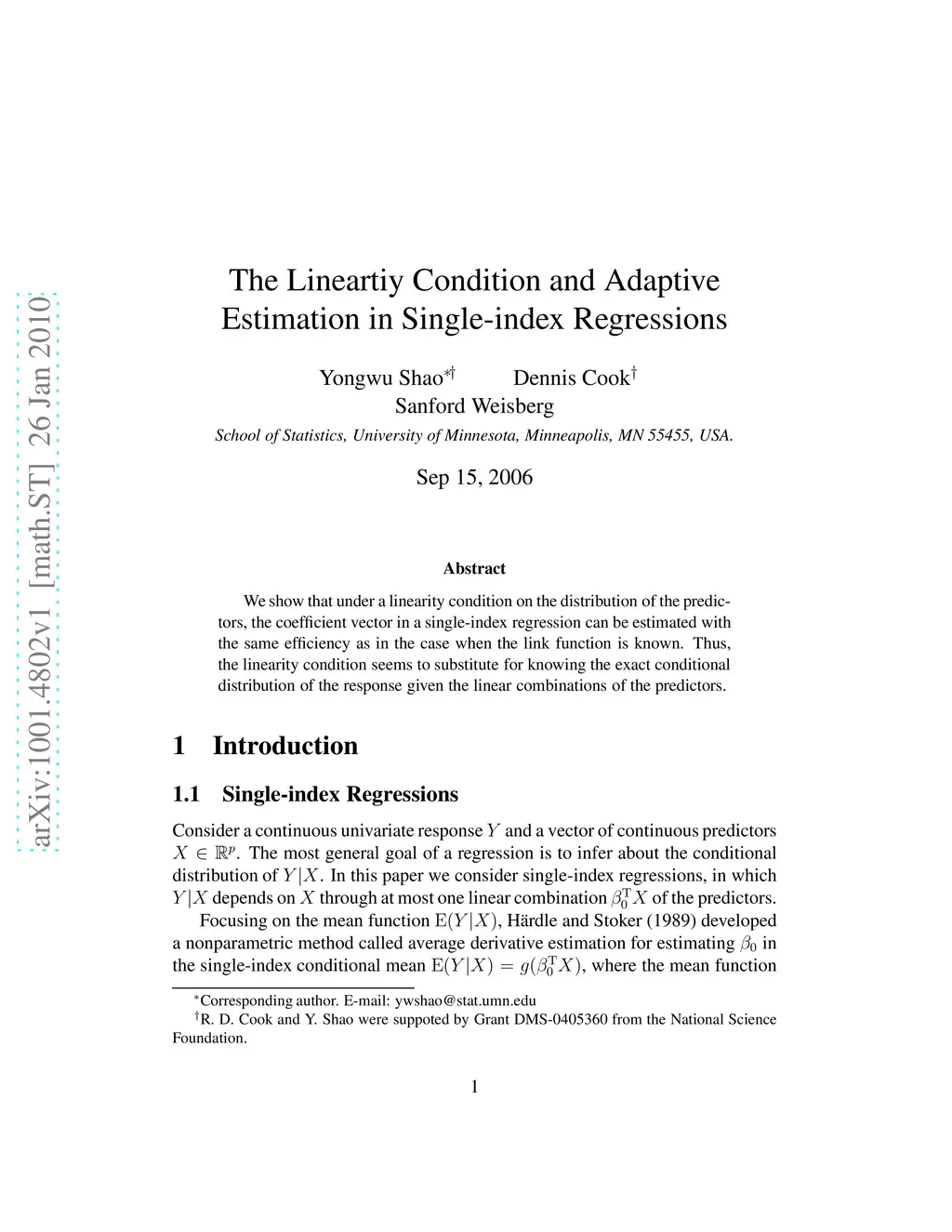 We show that under a linearity condition on the distribution of the predictors, the coefficient in single-index regression can be estimated with the same efficiency as in the case when the link function is known. Thus, the linearity condition seems to substitute for knowing the exact conditional distribution of the response given the linear combinations of the predictors.