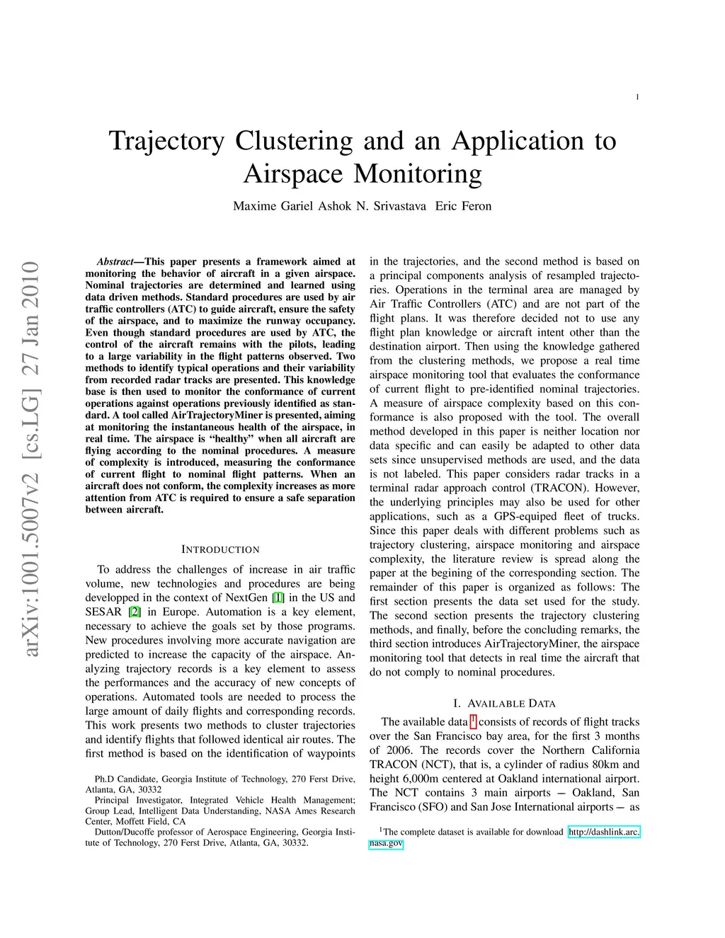Trajectory Clustering and an Application to Airspace Monitoring