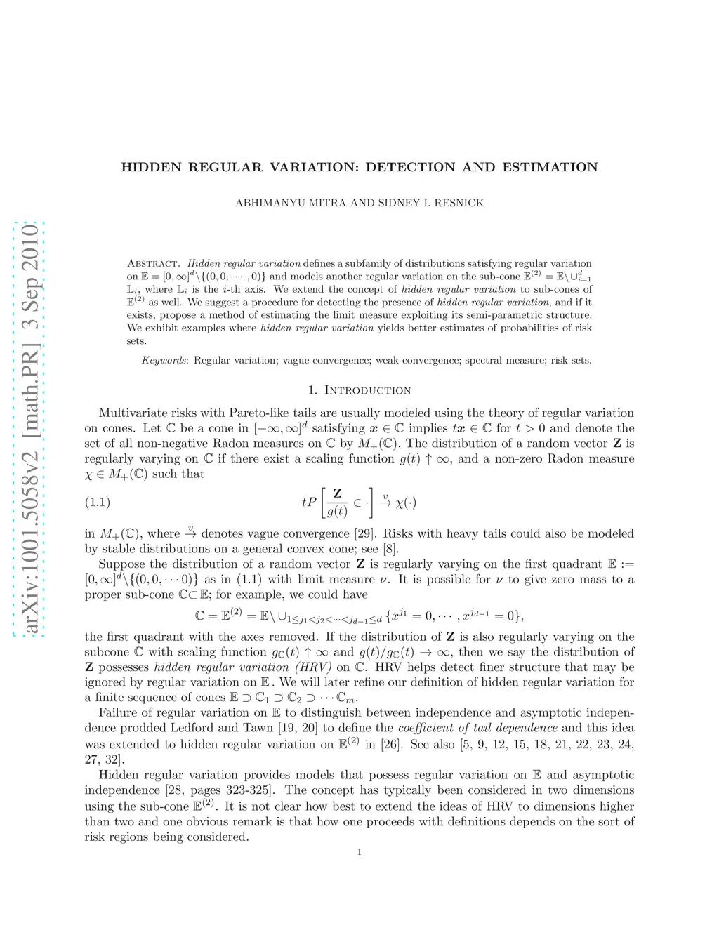 Hidden regular variation defines a subfamily of distributions satisfying multivariate regular variation on $\mathbb{E} = [0, \infty]^d \backslash \{(0,0, ..., 0) \} $ and models another regular variation on the sub-cone , where is the -th axis. We extend the concept of hidden regular variation to sub-cones of as well. We suggest a procedure for detecting the presence of hidden regular variation, and if it exists, propose a method of estimating the limit measure exploiting its semi-parametric structure. We exhibit examples where hidden regular variation yields better estimates of probabilities of risk sets.