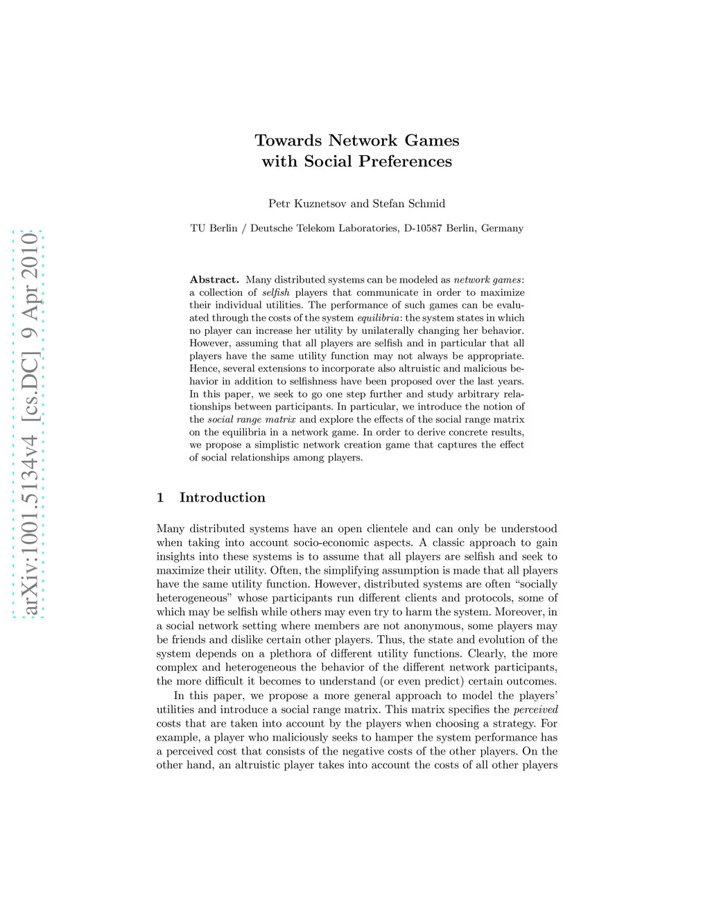 Many distributed systems can be modeled as network games: a collection of selfish players that communicate in order to maximize their individual utilities. The performance of such games can be evaluated through the costs of the system equilibria: the system states in which no player can increase her utility by unilaterally changing her behavior. However, assuming that all players are selfish and in particular that all players have the same utility function may not always be appropriate. Hence, several extensions to incorporate also altruistic and malicious behavior in addition to selfishness have been proposed over the last years. In this paper, we seek to go one step further and study arbitrary relationships between participants. In particular, we introduce the notion of the social range matrix and explore the effects of the social range matrix on the equilibria in a network game. In order to derive concrete results, we propose a simplistic network creation game that captures the effect of social relationships among players.