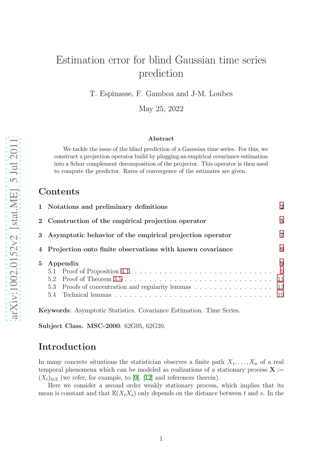 We tackle the issue of the blind prediction of a Gaussian time series. For this, we construct a projection operator build by plugging an empirical covariance estimation into a Schur complement decomposition of the projector. This operator is then used to compute the predictor. Rates of convergence of the estimates are given.