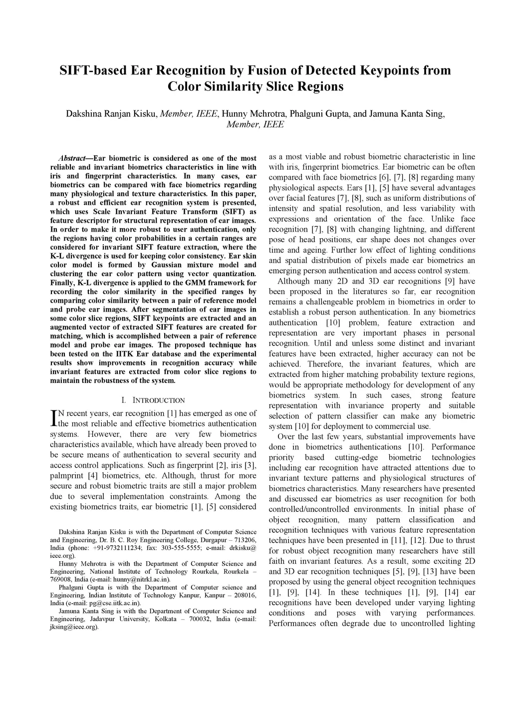 SIFT-based Ear Recognition by Fusion of Detected Keypoints from Color