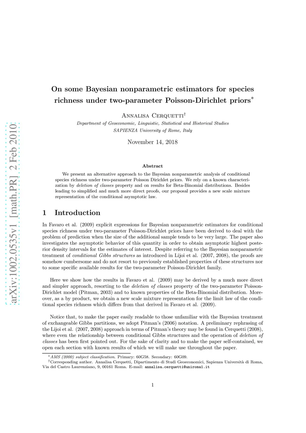 We present an alternative approach to the Bayesian nonparametric analysis of conditional species richness under two-parameter Poisson Dirichlet priors. We rely on a known characterization by deletion of classes property and on results for Beta-Binomial distributions. Besides leading to simplified and much more direct proofs, our proposal provides a new scale mixture representation of the conditional asymptotic law.