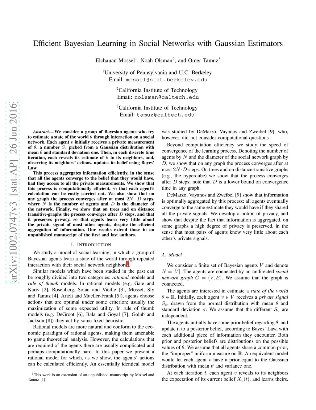 We consider a group of Bayesian agents who try to estimate a state of the world through interaction on a social network. Each agent initially receives a private measurement of : a number picked from a Gaussian distribution with mean and standard deviation one. Then, in each discrete time iteration, each reveals its estimate of to its neighbors, and, observing its neighbors' actions, updates its belief using Bayes' Law. This process aggregates information efficiently, in the sense that all the agents converge to the belief that they would have, had they access to all the private measurements. We show that this process is computationally efficient, so that each agent's calculation can be easily carried out. We also show that on any graph the process converges after at most steps, where is the number of agents and is the diameter of the network. Finally, we show that on trees and on distance transitive-graphs the process converges after steps, and that it preserves privacy, so that agents learn very little about the private signal of most other agents, despite the efficient aggregation of information. Our results extend those in an unpublished manuscript of the first and last authors.