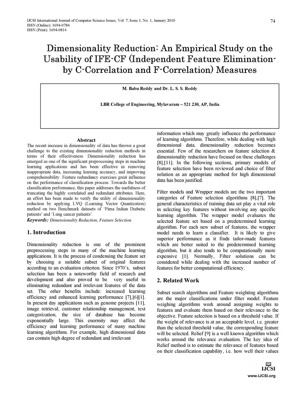 Dimensionality Reduction: An Empirical Study on the Usability of IFE-CF
