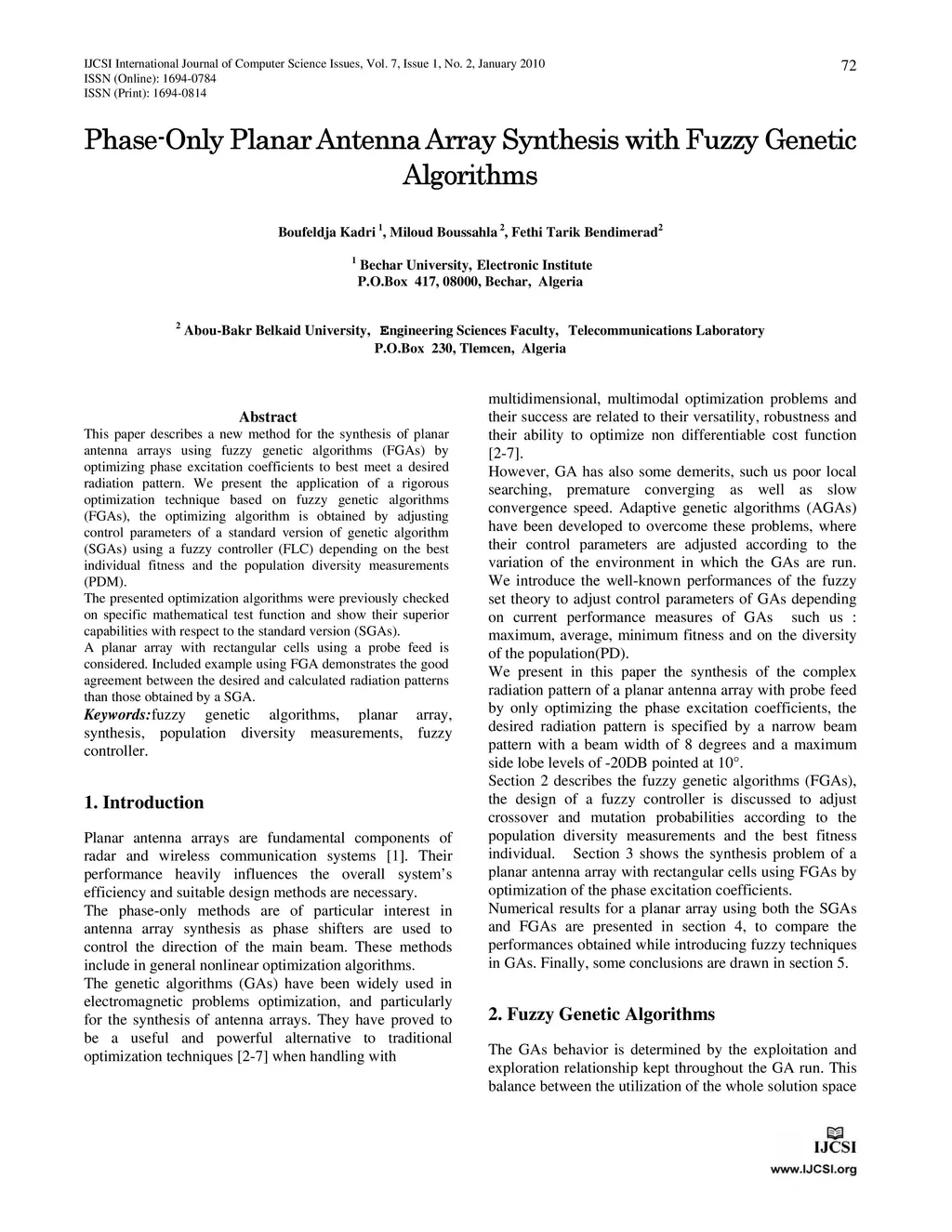 Phase-Only Planar Antenna Array Synthesis with Fuzzy Genetic Algorithms