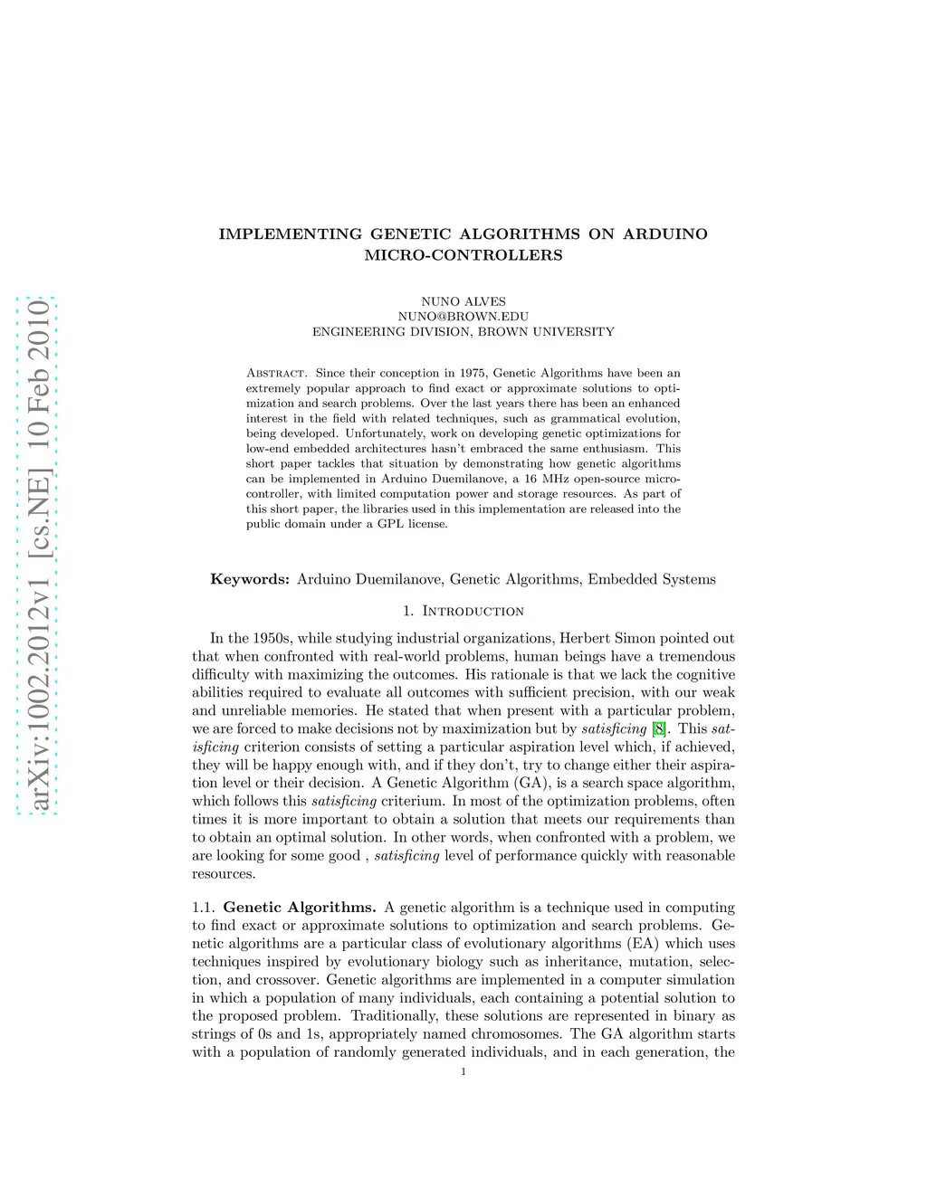 Implementing Genetic Algorithms on Arduino Micro-Controllers