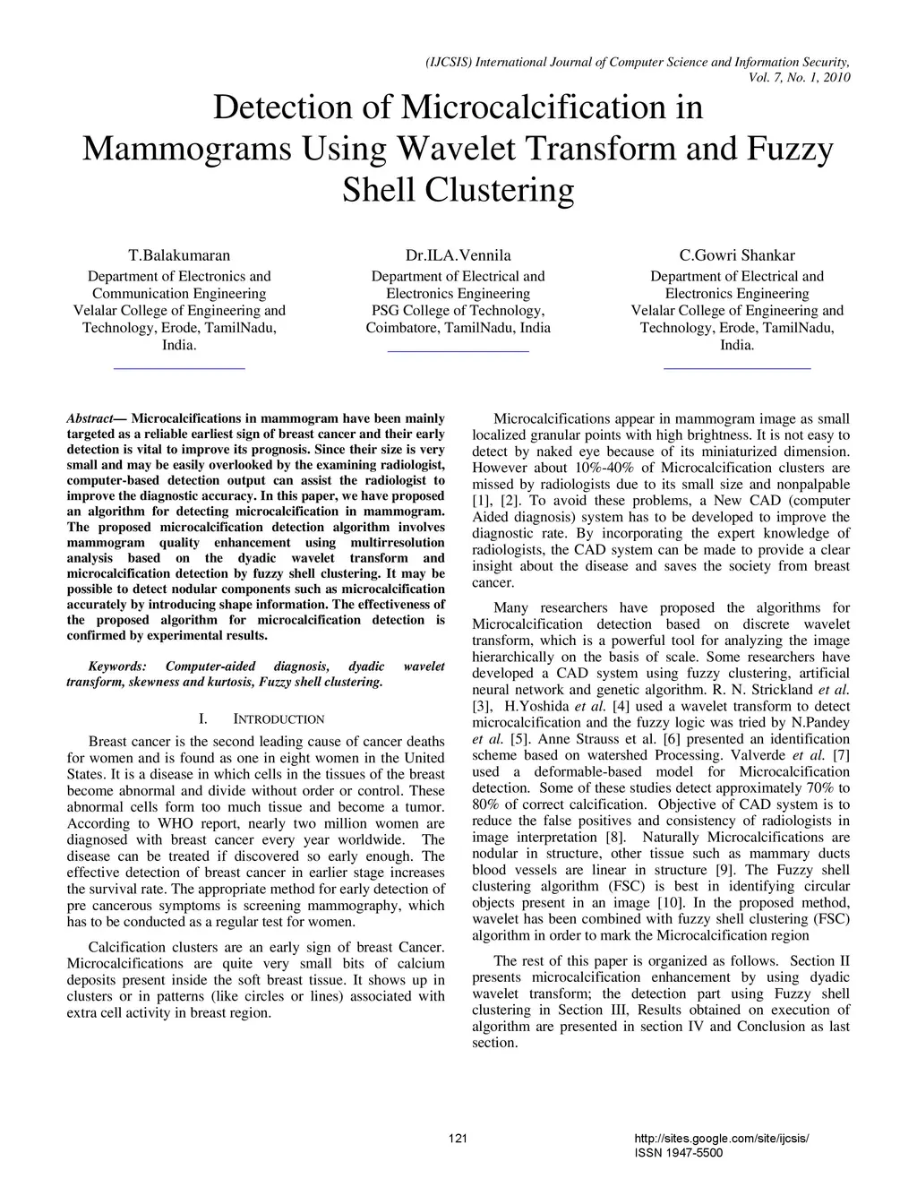 Detection of Microcalcification in Mammograms Using Wavelet Transform