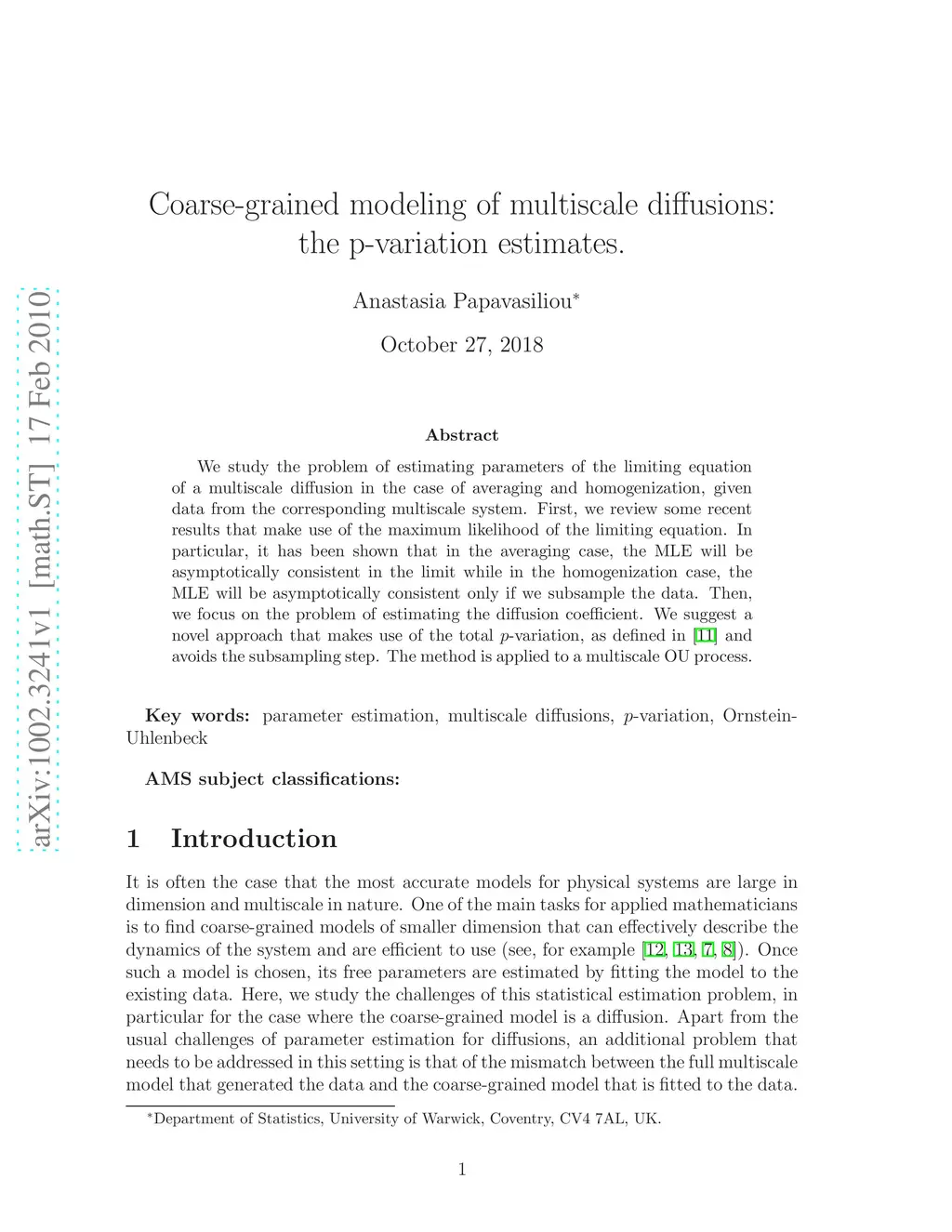 Coarse-grained modeling of multiscale diffusions: the p-variation