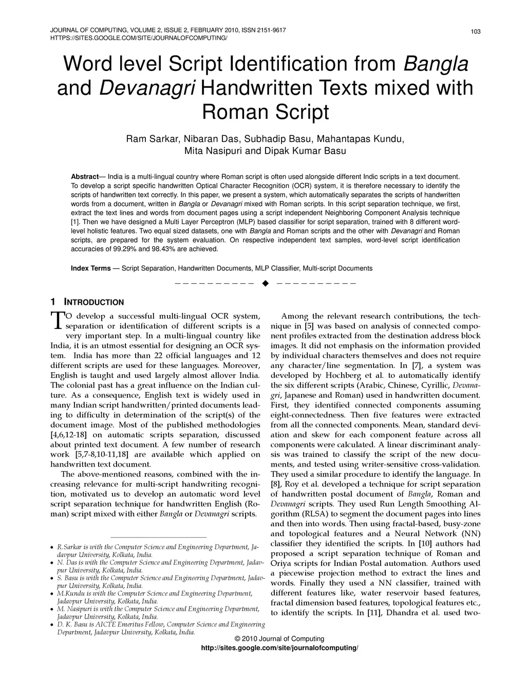 Word level Script Identification from Bangla and Devanagri Handwritten