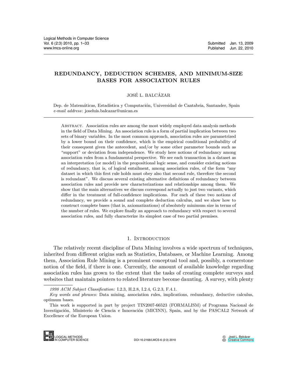 Association rules are among the most widely employed data analysis methods in the field of Data Mining. An association rule is a form of partial implication between two sets of binary variables. In the most common approach, association rules are parameterized by a lower bound on their confidence, which is the empirical conditional probability of their consequent given the antecedent, and/or by some other parameter bounds such as "support" or deviation from independence. We study here notions of redundancy among association rules from a fundamental perspective. We see each transaction in a dataset as an interpretation (or model) in the propositional logic sense, and consider existing notions of redundancy, that is, of logical entailment, among association rules, of the form "any dataset in which this first rule holds must obey also that second rule, therefore the second is redundant". We discuss several existing alternative definitions of redundancy between association rules and provide new characterizations and relationships among them. We show that the main alternatives we discuss correspond actually to just two variants, which differ in the treatment of full-confidence implications. For each of these two notions of redundancy, we provide a sound and complete deduction calculus, and we show how to construct complete bases (that is, axiomatizations) of absolutely minimum size in terms of the number of rules. We explore finally an approach to redundancy with respect to several association rules, and fully characterize its simplest case of two partial premises.