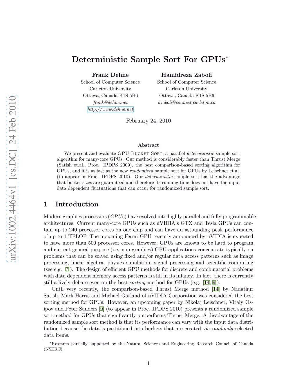 Deterministic Sample Sort For GPUs