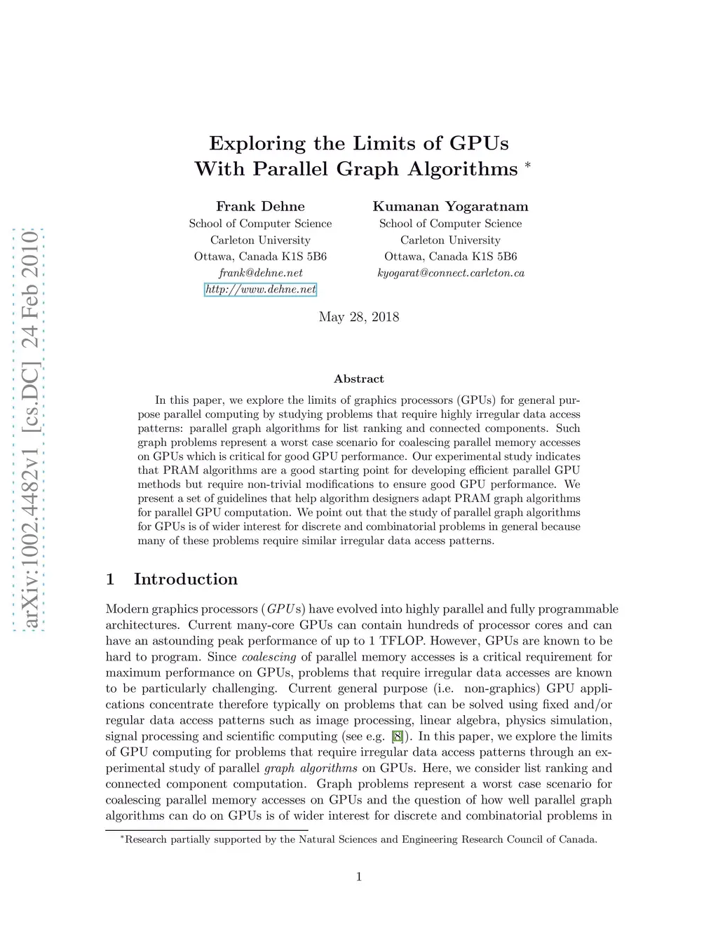 Exploring the Limits of GPUs With Parallel Graph Algorithms