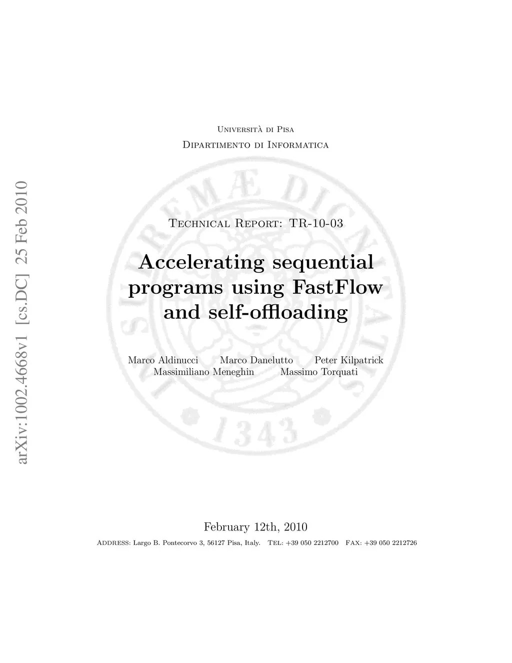 Accelerating sequential programs using FastFlow and self-offloading