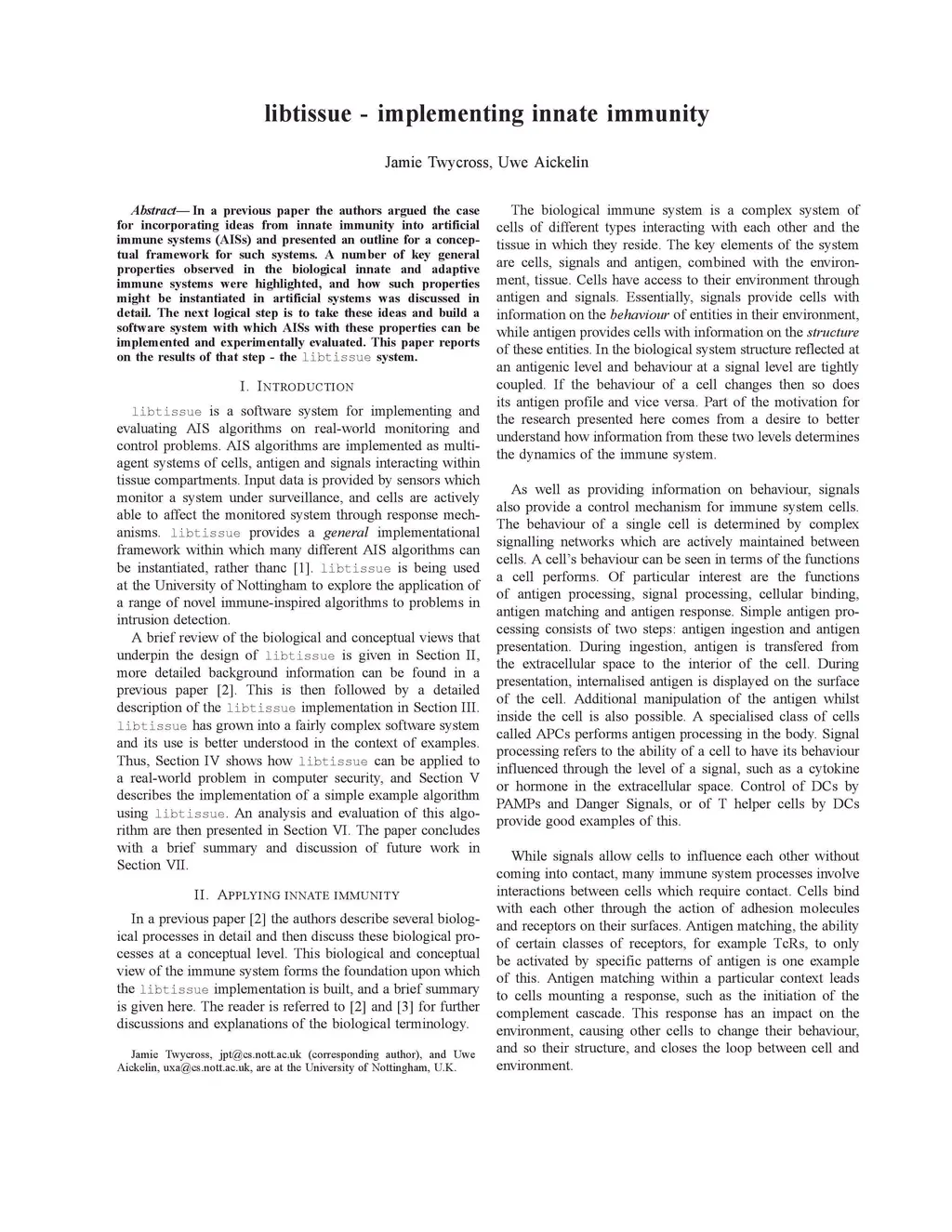 libtissue - implementing innate immunity