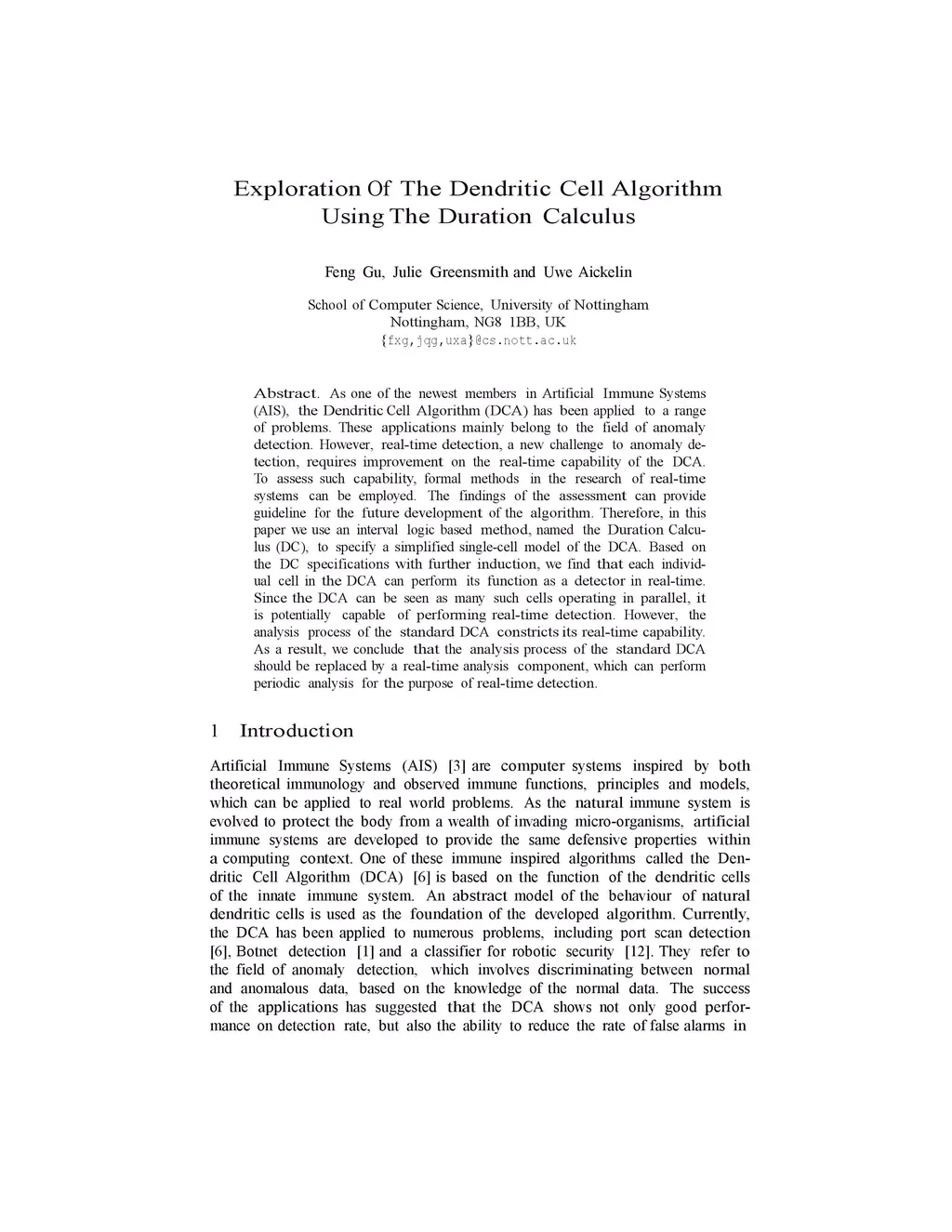 Exploration Of The Dendritic Cell Algorithm Using The Duration Calculus