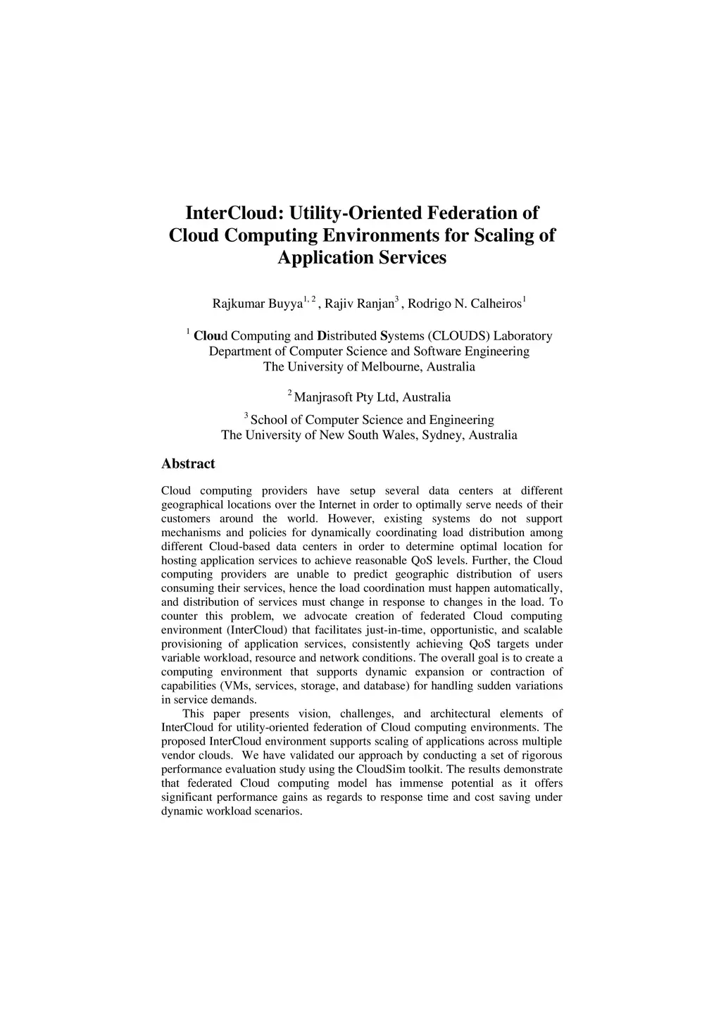 InterCloud: Utility-Oriented Federation of Cloud Computing Environments