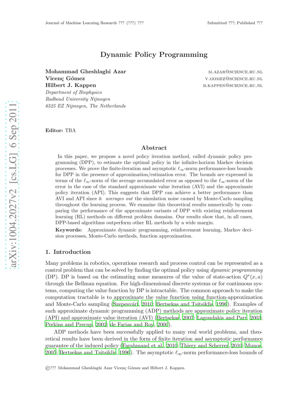 Dynamic Policy Programming