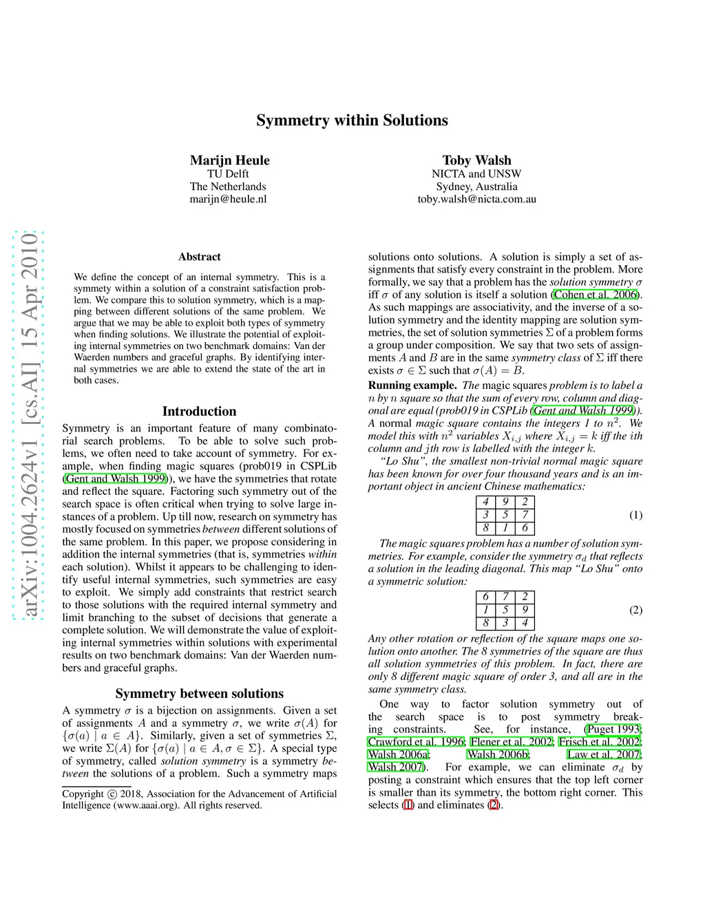 Symmetry within Solutions
