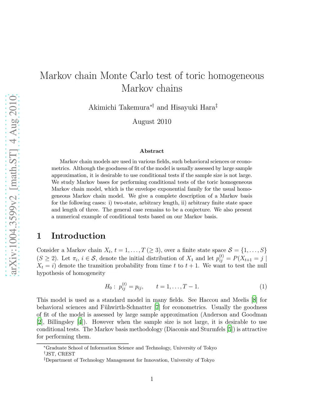 Markov chain Monte Carlo test of toric homogeneous Markov chains