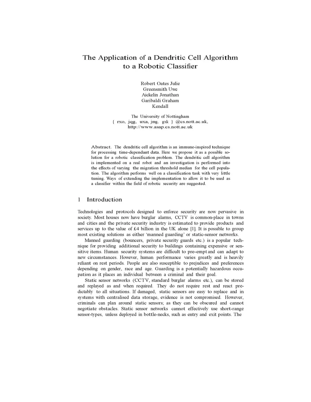 The Application of a Dendritic Cell Algorithm to a Robotic Classifier