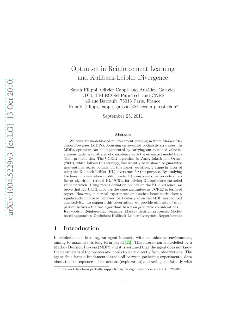 Optimism in Reinforcement Learning and Kullback-Leibler Divergence