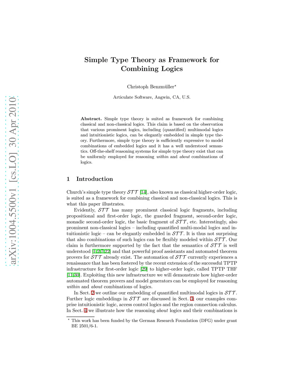 Simple type theory is suited as framework for combining classical and non-classical logics. This claim is based on the observation that various prominent logics, including (quantified) multimodal logics and intuitionistic logics, can be elegantly embedded in simple type theory. Furthermore, simple type theory is sufficiently expressive to model combinations of embedded logics and it has a well understood semantics. Off-the-shelf reasoning systems for simple type theory exist that can be uniformly employed for reasoning within and about combinations of logics.